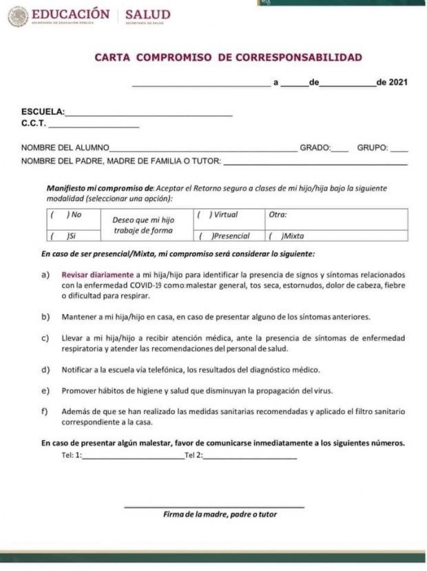 Nacional La SEP insistió en que el regreso a clases presenciales es ‘inminente’ y piden carta de corresponsabilidad 1 min de lectura