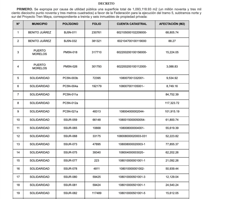 Nacional Tren Maya: expropian 36 terrenos por más de un millón de metros cuadrados para construir el tramo 5 2 min de lectura